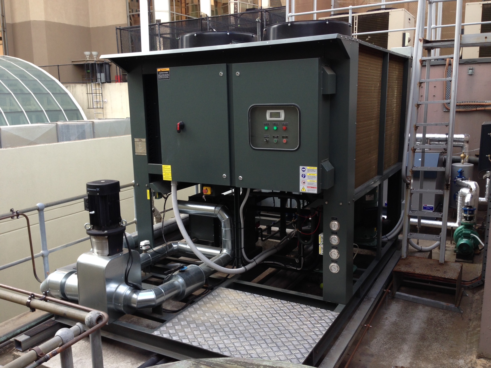 This inner city Melbourne low rise building had a modest 220kW cooling demand. The site was serviced by 1 central chiller mounted between existing concrete plinths. The Cold Magic chiller + custom base frame solution facilitated reduced site work for the contractor.
